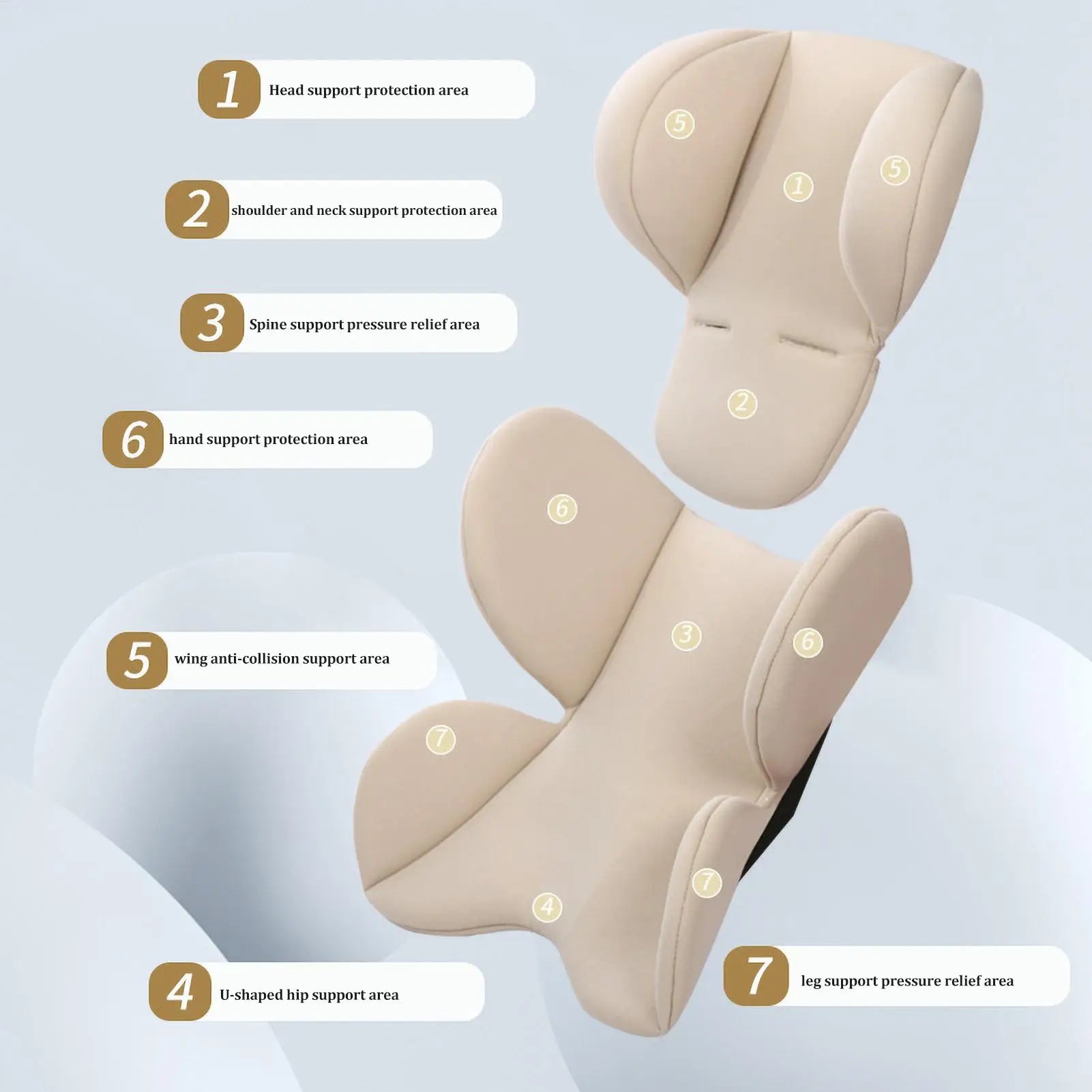 Ergonomic Support: 360° round headrest and human-shaped body support maintain proper posture and promote healthy development.